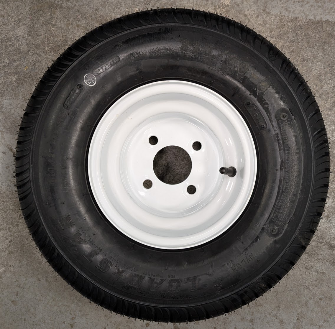 This rim and tire combo from Load Star is commonly found on smaller boat trailers or smaller utility trailers. Good little combo to get you going down the road.